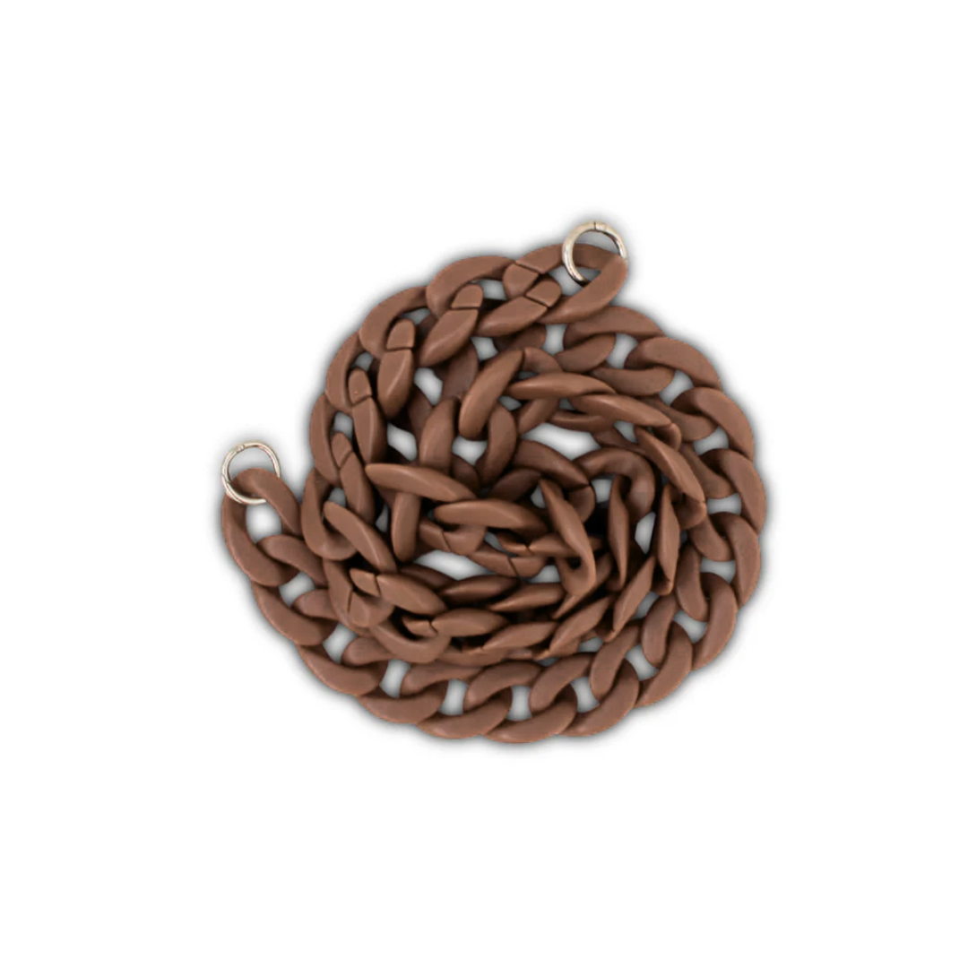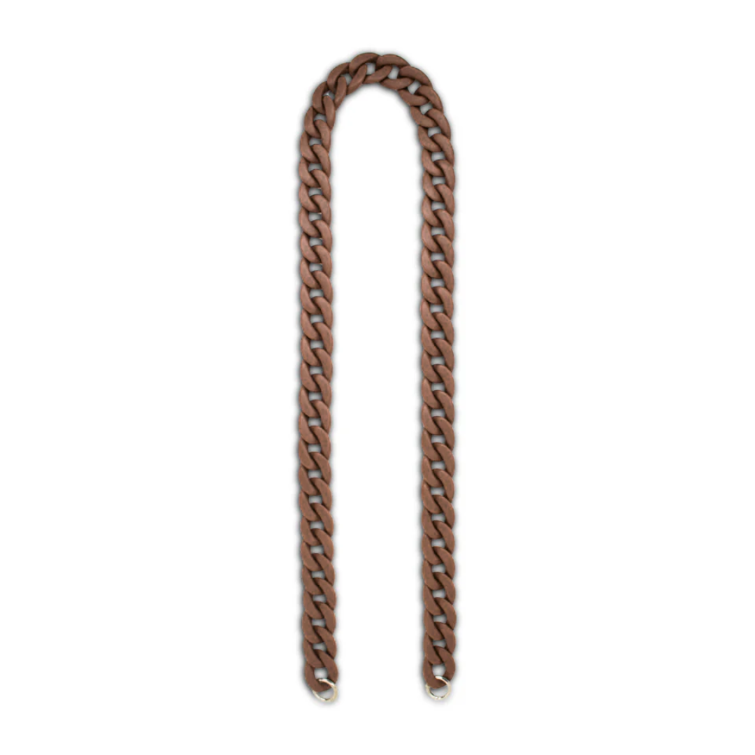 - Correa plana extraíble para bolsos fabricada en material de poliresina color marrón claro.