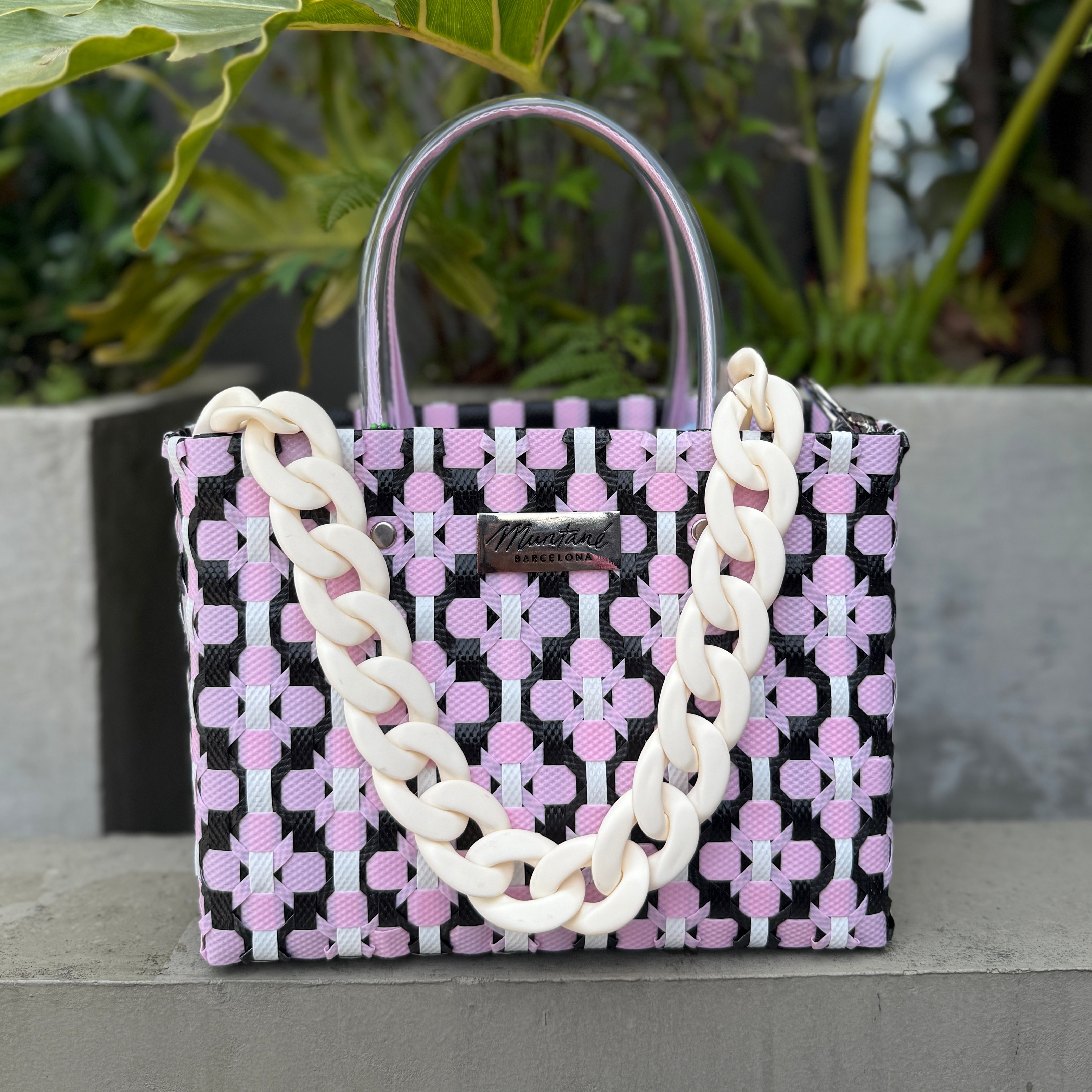 Bolso trenzado de plástico 100% reciclado.