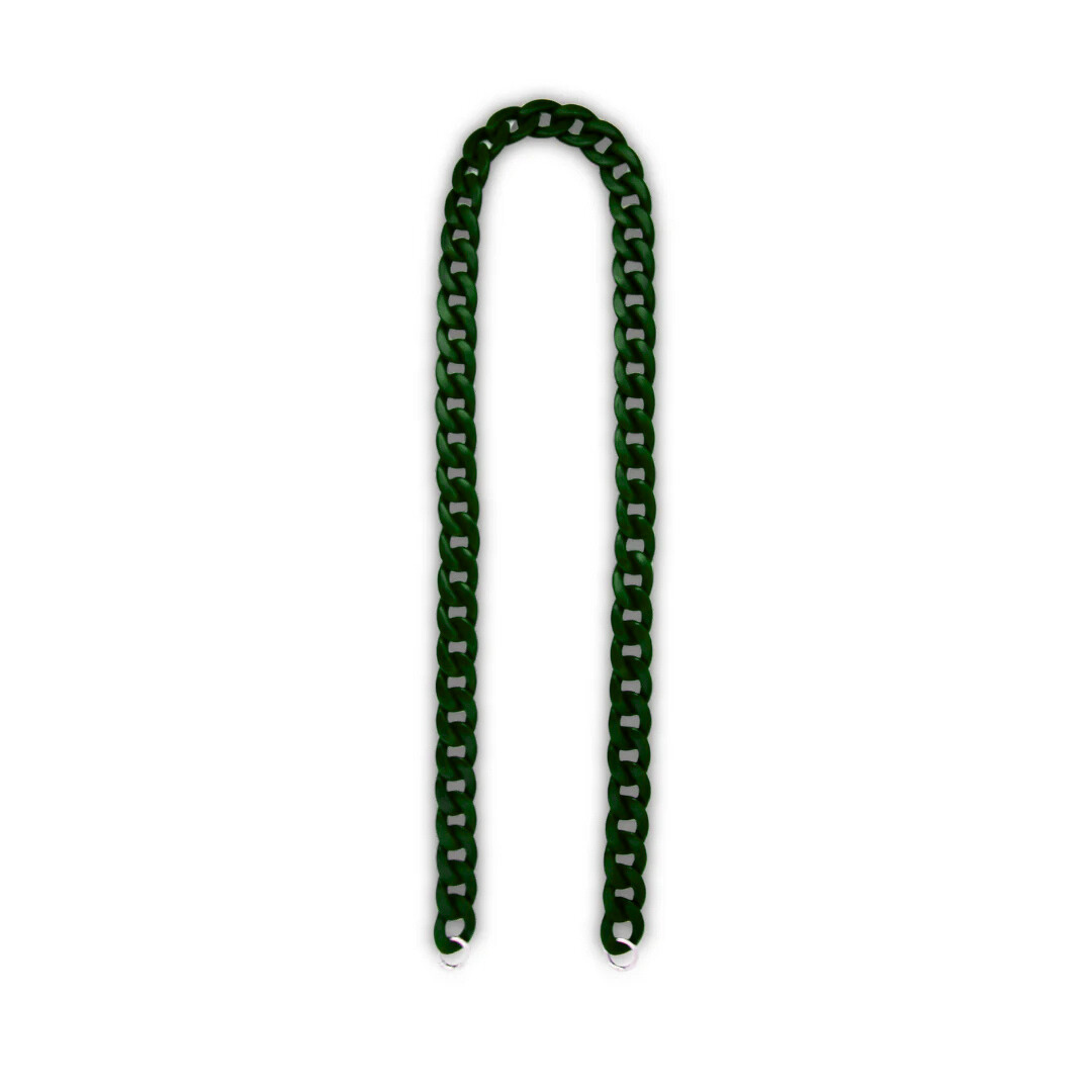 • Correa plana extraíble para bolsos fabricada en material de poliresina color verde oscuro.