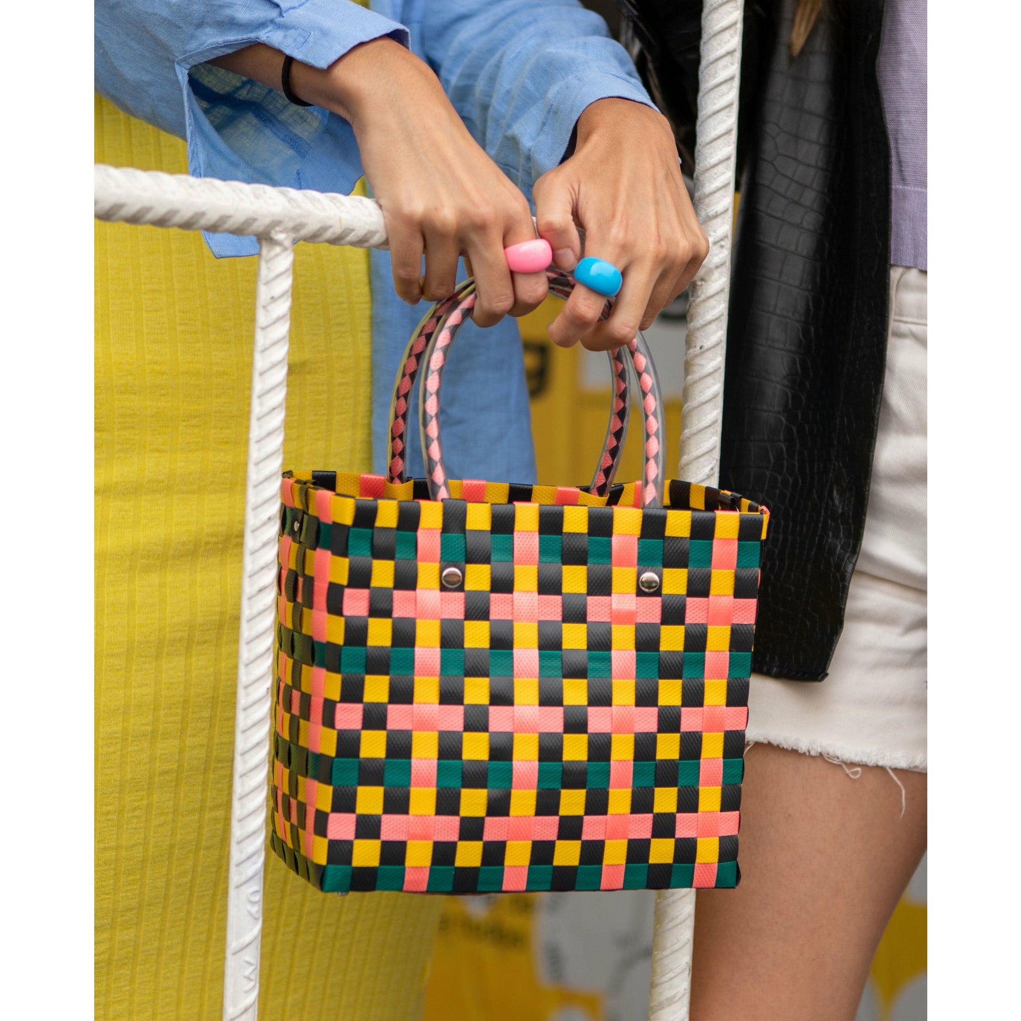 Bolso trenzado de plástico 100% reciclado.