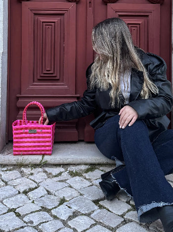 Nuestros bolsos están hechos con materiales sostenibles como el polipropileno reciclado.